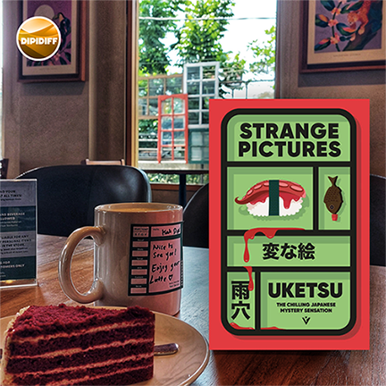 Foto kedua saya ambil dengan Eye Angle. Saya cari bagian cafe yang terlihat banyak pohon dengan interior yang memberikan pola jika digunakan sebagai latar. Ini untuk mengakali agar latar foto tidak kelihatan kosong atau terlalu sepi. Pilihan saya jatuh pada meja dengan latar tangga menuju ke area atas (gambar 1). Saya letakkan buku di atas meja batu dalam posisi berdiri dan memastikan bagian kanan dan kiri buku tidak sejalur dengan garis tiang yang terlihat di bagian belakang (gambar 2). Foto ini lalu saya edit di apps Snapseed. Saya beri filter Accentuate 1x lalu filter Pop 1x (gambar 3). Saya lempar hasil editan ke apps Photolayer dan saya timpa dengan cover buku The Lantern of Lost Memories. Saya atur Shadow - Opacity dan Shadow - Offset Y. Saya juga melakukan penyesuaian di Color - Blur, Color - Brightness, dan color Contrast. Hasil bisa dilihat di gambar 4. Saya beri logo Dipidiff dan hasil akhir ini bisa dilihat di gambar 5.
