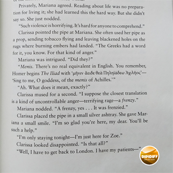 She fondly imagined her mother s arrival in Athens - armed with trunks and suitcases full of books instead of clothes. and in her absence, the lonely girl would turn to her mother s books for solace and companionship. During the long summer afternoons, Mariana grew to love the feel of a book in her hands, the smell of paper, the sensation of turning a page. She would sit on the rusty swing in the shade, bite into a crisp green apple, or an overripe peach, and lose herself in a story.