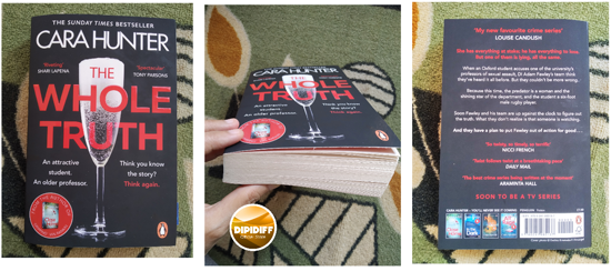 Buku-buku Cara Hunter itu punya unsur visual. Dan dari awal, memang poin ini yang membuat karya-karya Cara Hunter itu unik di mata saya. Especially DI Adam Fawley series. Visual yang saya maksud di sini bisa berupa berita di koran, cuitan di twitter, percakapan applikasi text, dan kalo tidak salah ingat baru di The Whole Truth ada Podcast True Crime juga. Di satu sisi saya pikir ini menjadi pembeda buku-buku Hunter dengan penulis lainnya, tapi bisa jadi akan ada pembaca yang bosan dengan tampilan ini karena memang selalu ada di tiap buku seri Adam Fawley, apalagi katanya format seperti ini menyulitkan pembaca yang menggunakan versi e book kindle.