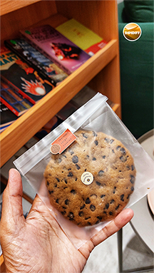 Saya bahkan suka sekali dengan cookies choco chips yang saya order bersama teh. Rasanya gurih, manis coklat, kriuk. Pengemasannya juga menarik.