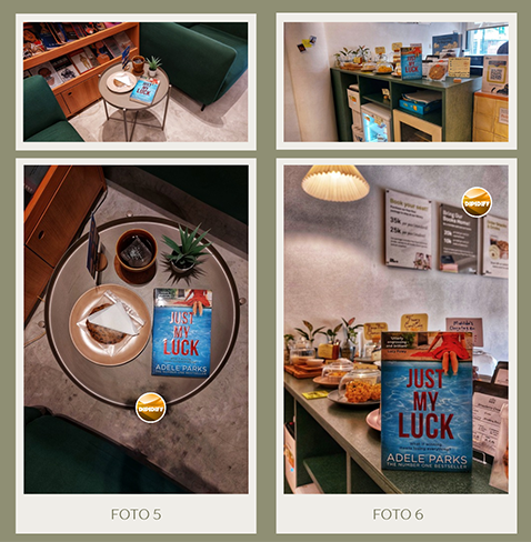 Hal menyenangkan di The Room 19, buat saya pribadi, selain soal baca bukunya, tentu saja ruangan mereka yang cantik untuk latar foto buku. Saya kebetulan membawa buku Just My Luck - Adele Parks yang sudah saya niatkan untuk didonasikan ke The Room 19. Novel thriller ini masuk kategori bestseller. Mudah-mudahan bisa menambah koleksi buku berkualitas di perpus The Room 19.
