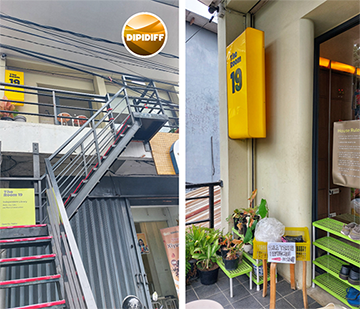 Ruangan The Room 19 terletak di lantai 2 dari sebuah bangunan berbentuk ruko. Ini sempat membingungkan saya karena menoleh ke kanan dan ke kiri tapi tidak menemukan lokasi, rupanya harus teliti dan menengok sedikit ke atas baru bisa menemukan tempatnya.