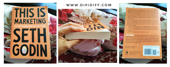 Mungkin karena saya penggemar warna oranye alias jingga, maka menurut saya disain buku ini sangat menarik. Tapi saya juga yakin, secara marketing judul buku yang ditulis besar-besar dengan nama Seth Godin yang dicetak lebih besar lagi, ditambah wajah Seth yang mengintip sedikit di huruf O punya nilai taktik pemasaran buku tersendiri ^^. Nama Seth Godin sebagai penulis buku-buku bisnis terlaris memang sudah dikenal.