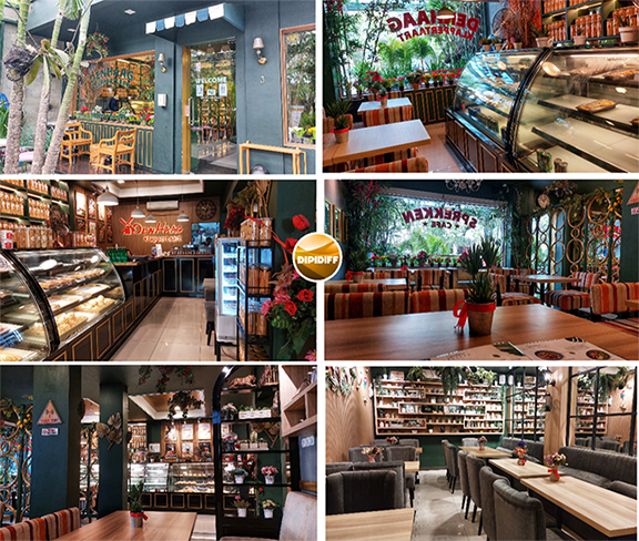 Picture: Paling kiri atas: Pintu masuk. Sisanya: Ruangan bagian dalam Sprekken Cafe